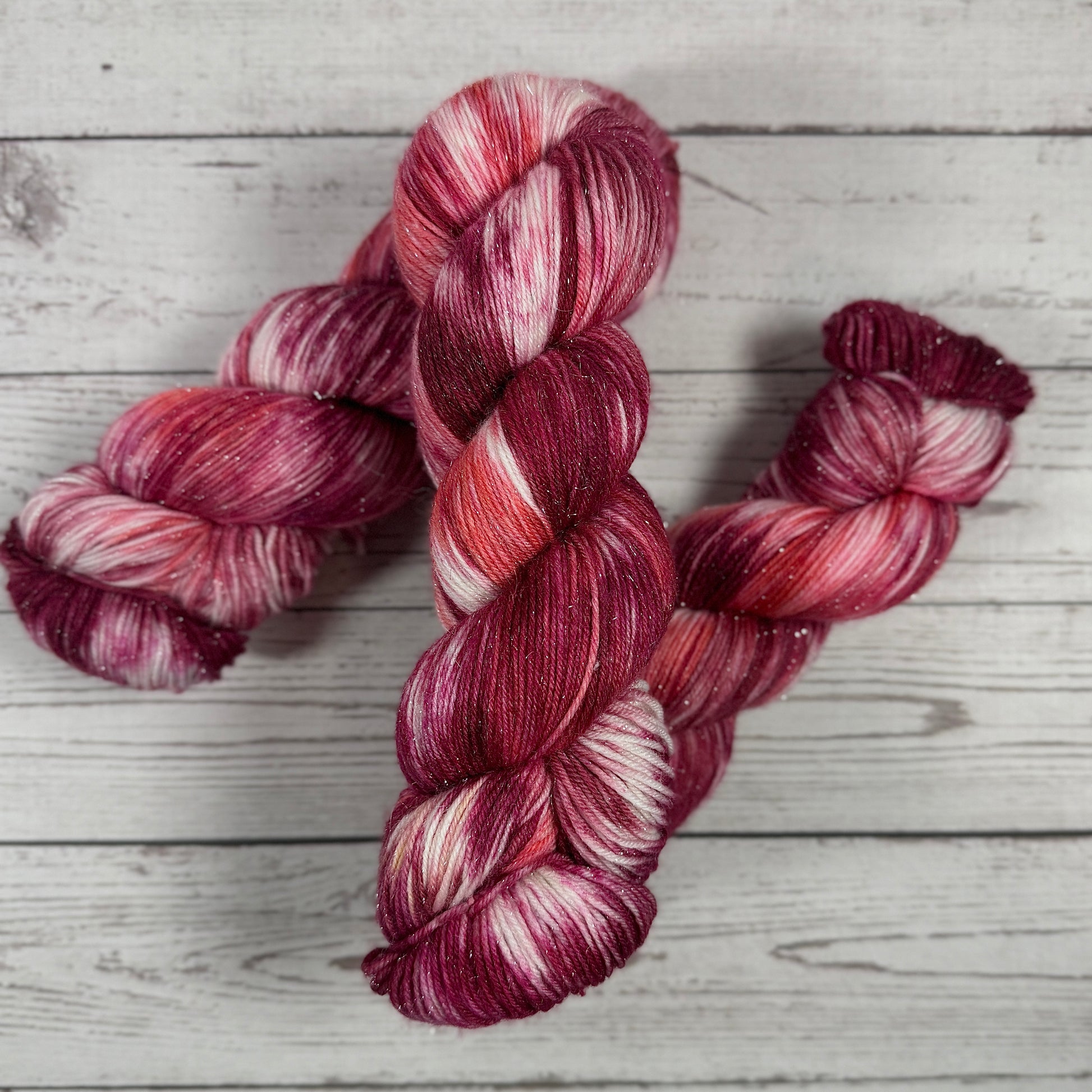 From dice dye episode 44 on my socials. Another Hazbin Hotel inspired yarn because season 2 is amazing and I can't stop listening to the soundtrack. Similar to the colorway You're Poison this colorway is all pink. It reminds me of the poster for season 1.
