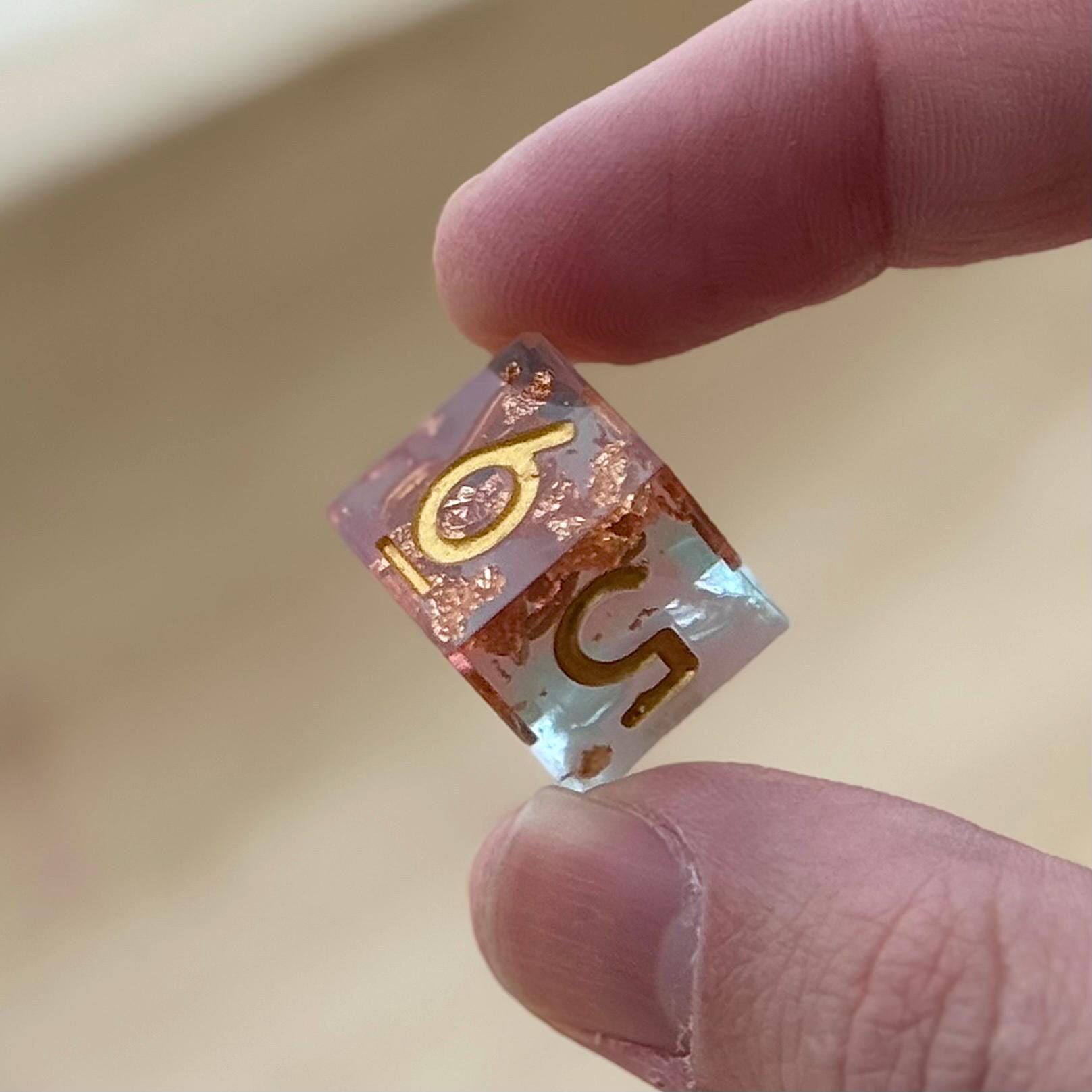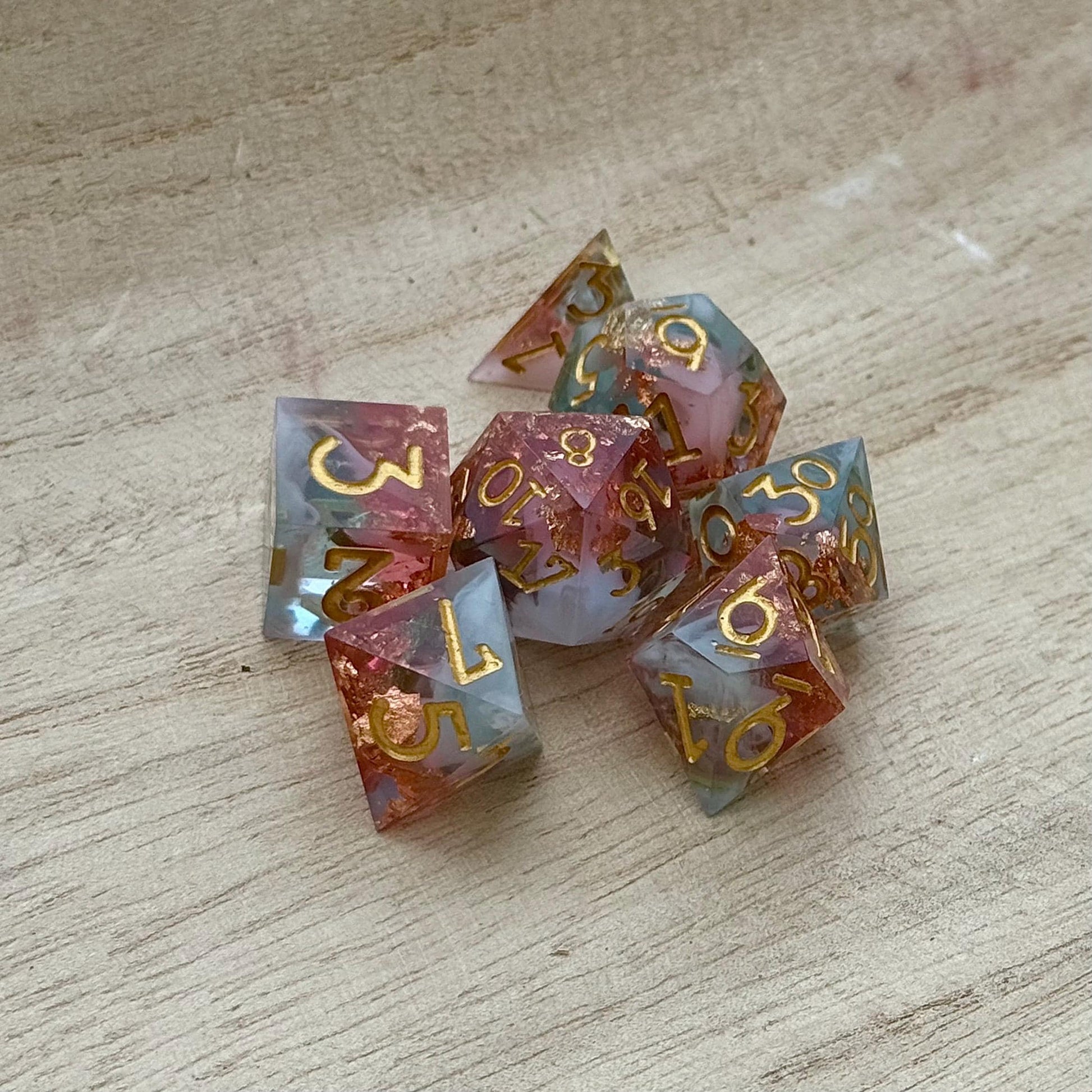 Made to order hand made 7 piece dice set. Includes a D4, D6, D8, D10, D%, D12 and D20. The set takes about a month to make.