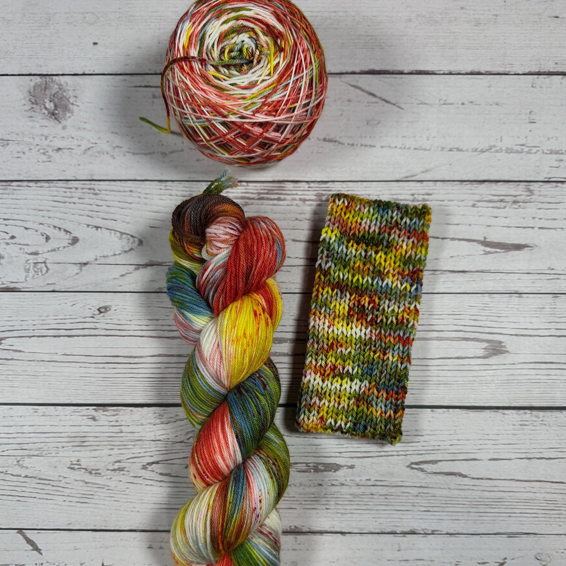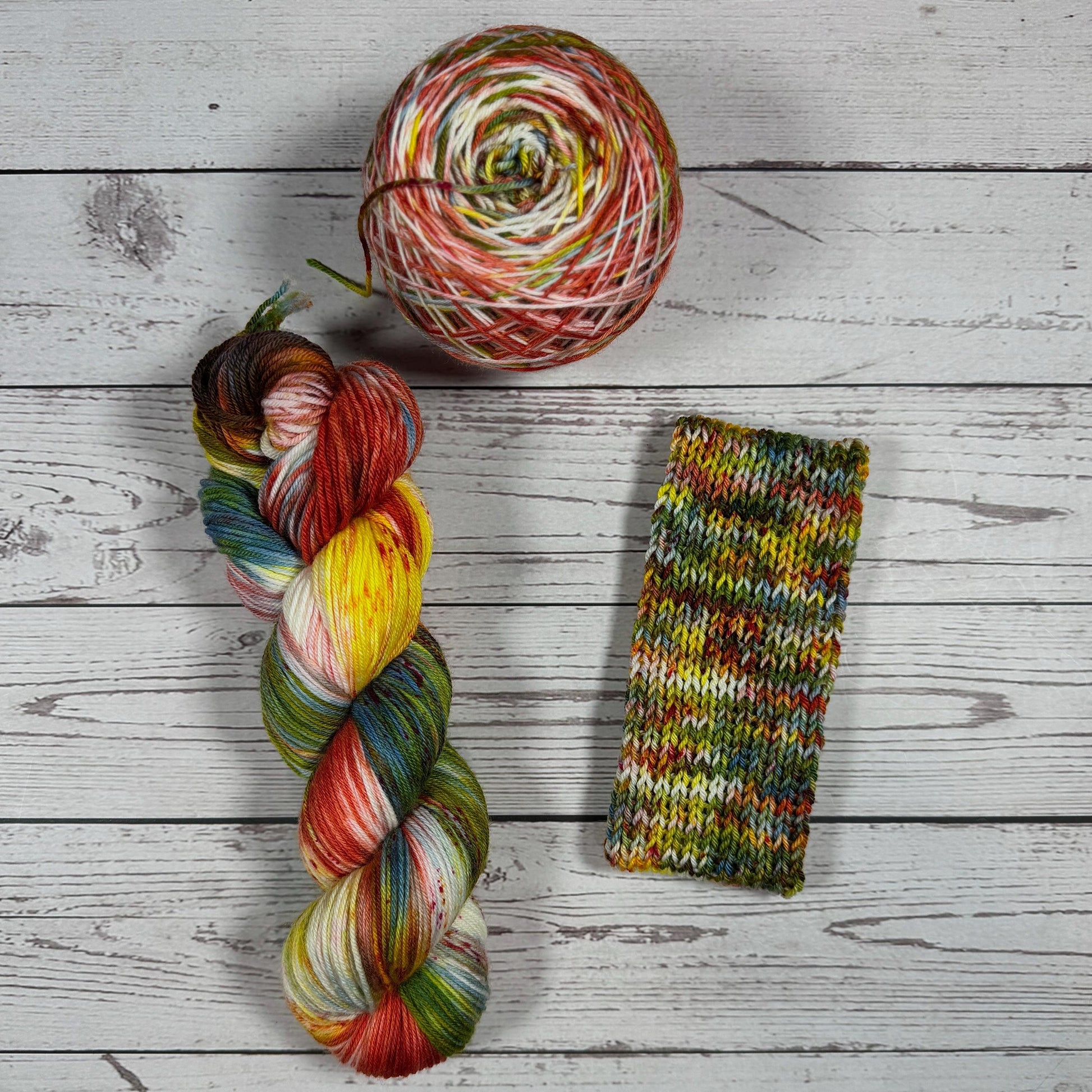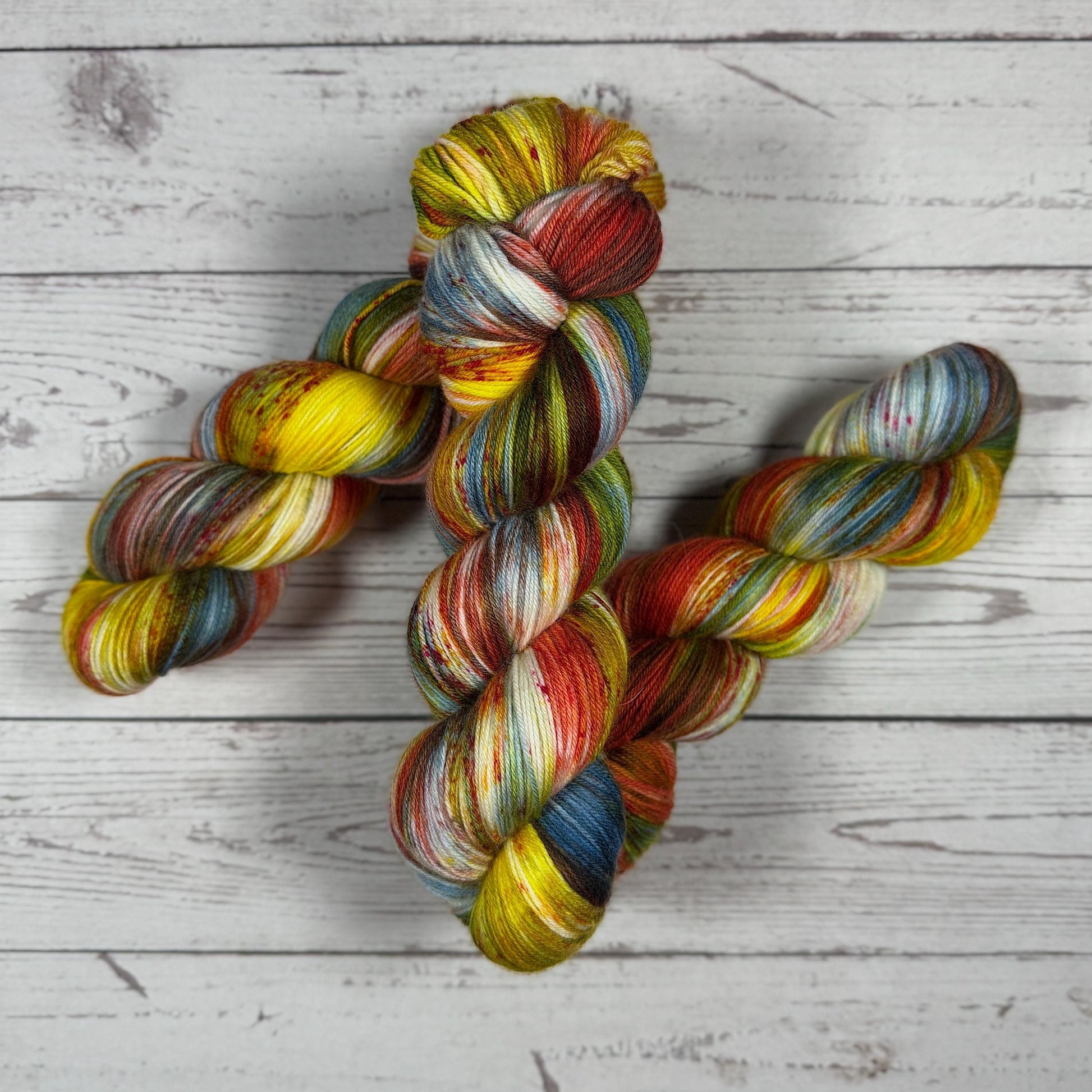 A special dice dye for the Jester collection. A plethora of colors come together to feel like walking through a wildflower field. During the campaign Jester paints Yasha a wildflower mural in Yasha's bedroom. This yarn felt like a representation of that beautiful mural and the wonderful friendship these two women share. Sadly there are no hidden dicks in this wildflower mural. Jester is played by Laura Bailey and the character belongs to her and Critical Role.